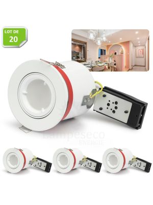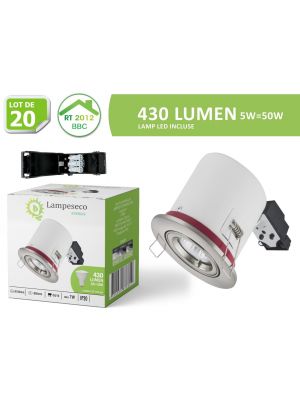 1. Lot de 20 Spot Encastrable BBC Orientable diametre 100mm avec douille et ampoule GU10 7W Blanc Neutre